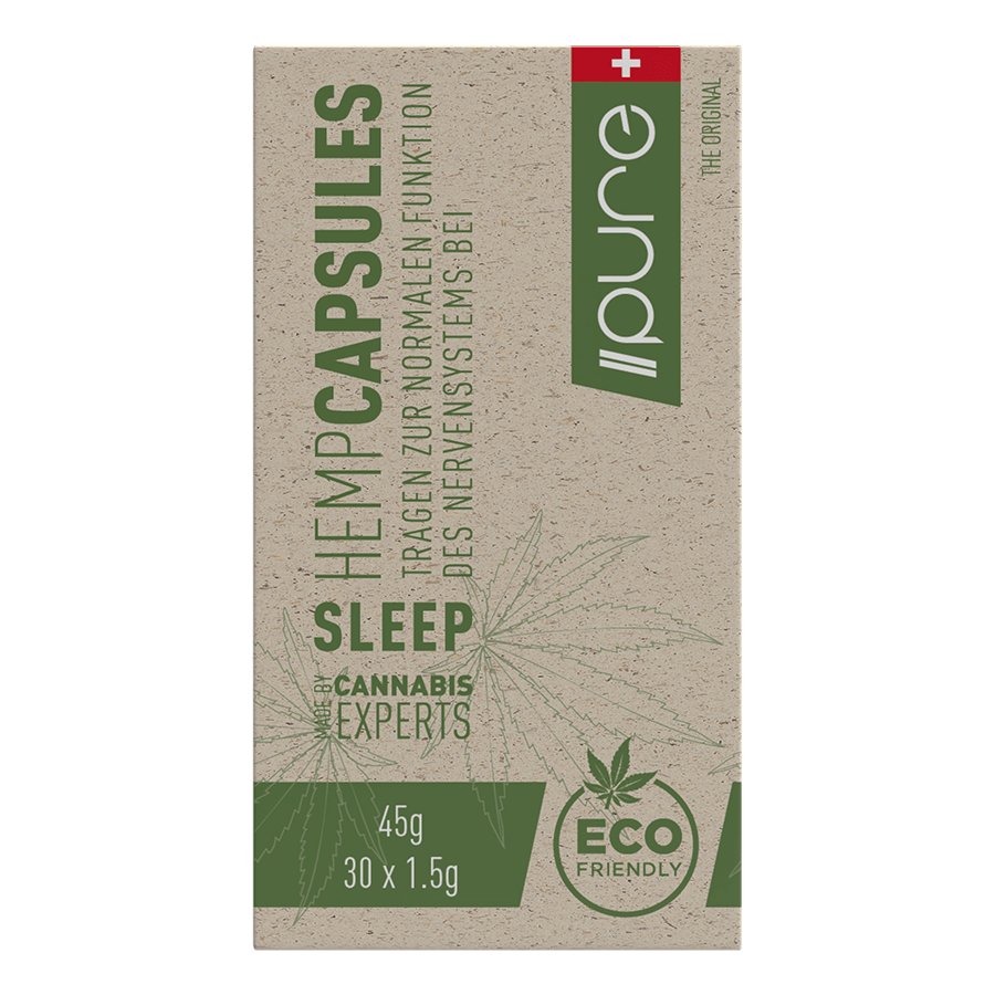 Die Pure Hemp Capsules Sleep sind ein Nahrungsergänzungsmittel in Form von Weichkapseln zur Nervenregulierung.