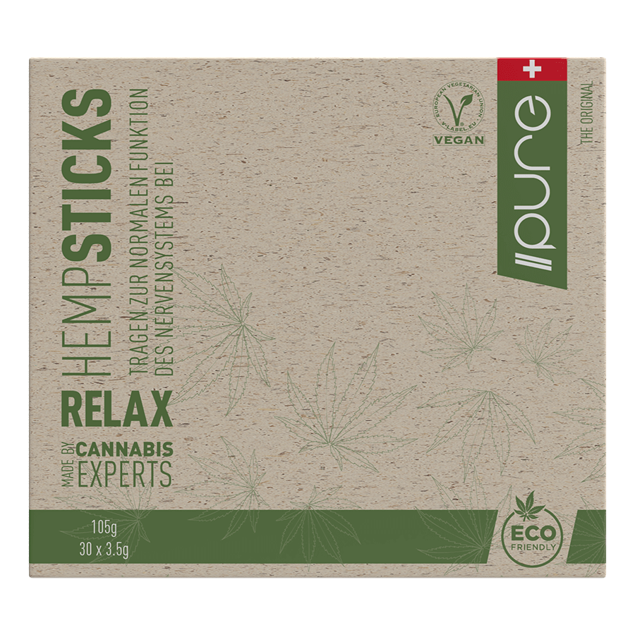 Die Pure Hemp Sticks Relax sind ein wasserlösliches Granulat und Nahrungsergänzungsmittel zur Nervenregulierung.